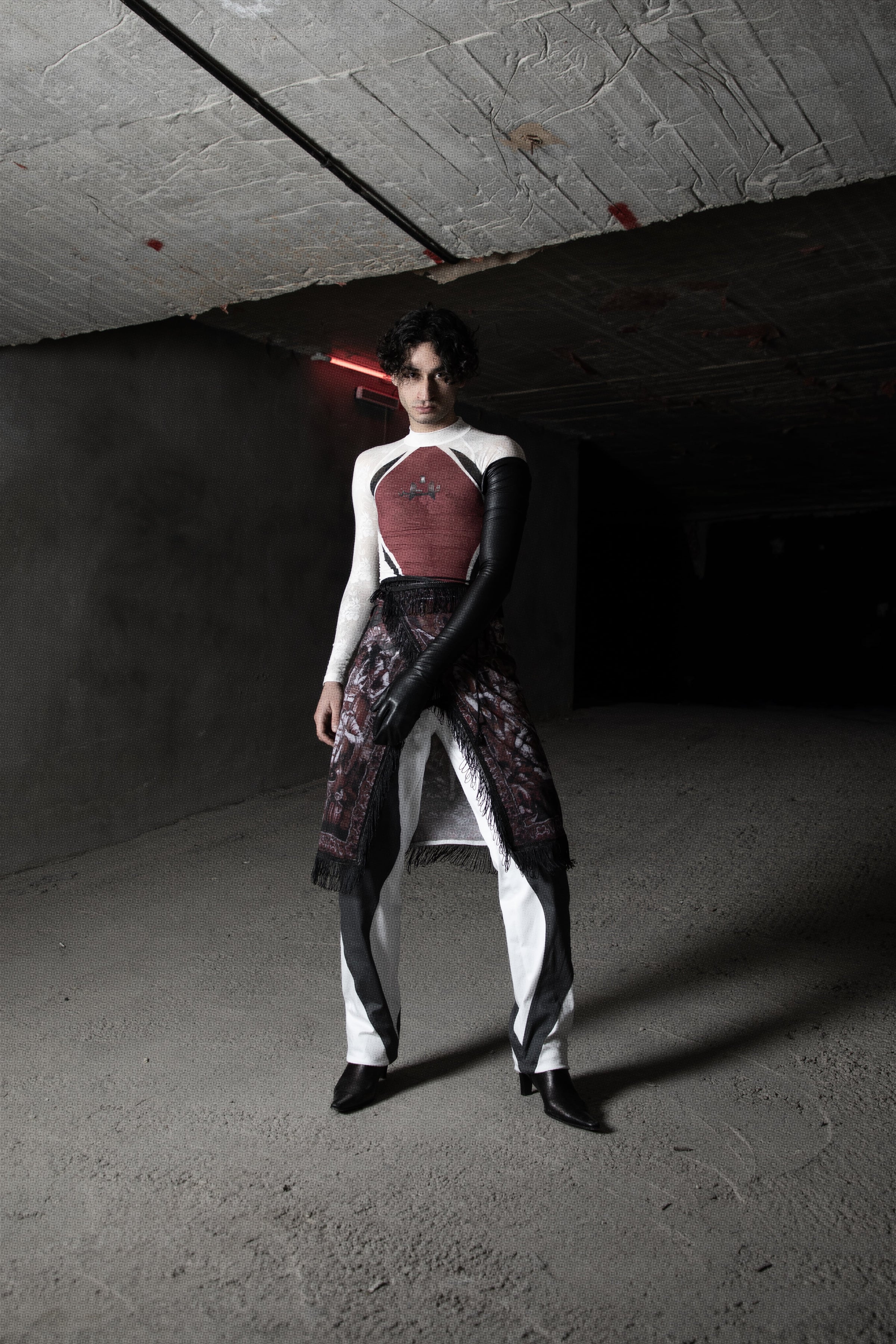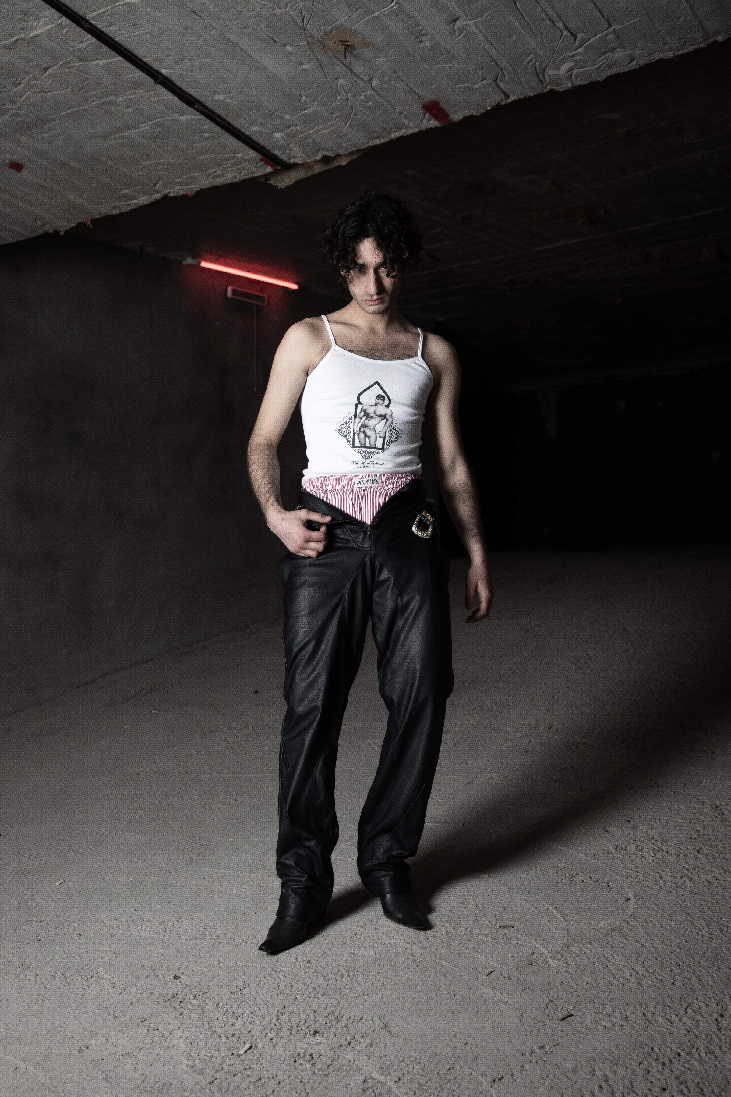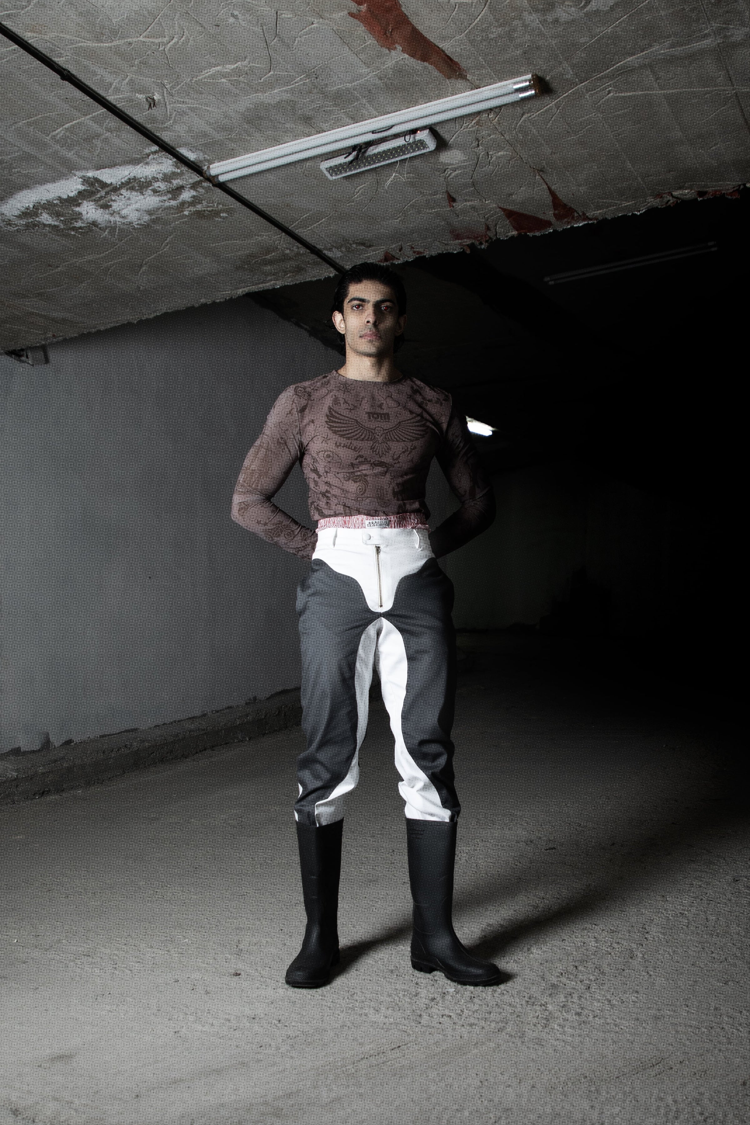 Trashy Clothing’s SS23 collection–titled Desert Delights– explores eroticism, orientalism & awakenings. Inspired by Joseph Massad’s book ‘Desiring Arabs’, the collection highlights diverse sexual interpretation in the Arab world in contrast to colonial, orientalist, or fetishized views. Desert Delights references discussions of sex in erotica and bawdy, satirical belles-lettres & poetry during the Arab renaissance. With the introduction of the Abu Nuwas Inspection trousers, Bath-House skirt, and Shabab Il-Quds Jacket, SS23 explores & reclaims Arab sexuality. The label’s signature Arab pop culture references are included with odes to modern Arab sex symbols such as Massari, Haifa Wehbe, and Marwa. Trashy Clothing also introduces an exclusive collaboration with the Tom Of Finland Foundation, featuring five pieces that are inspired by Tom’s homoerotic art in an appreciation to the foundation’s dedication to protect, preserve, document and educate the public about erotic art and erotic artists.
