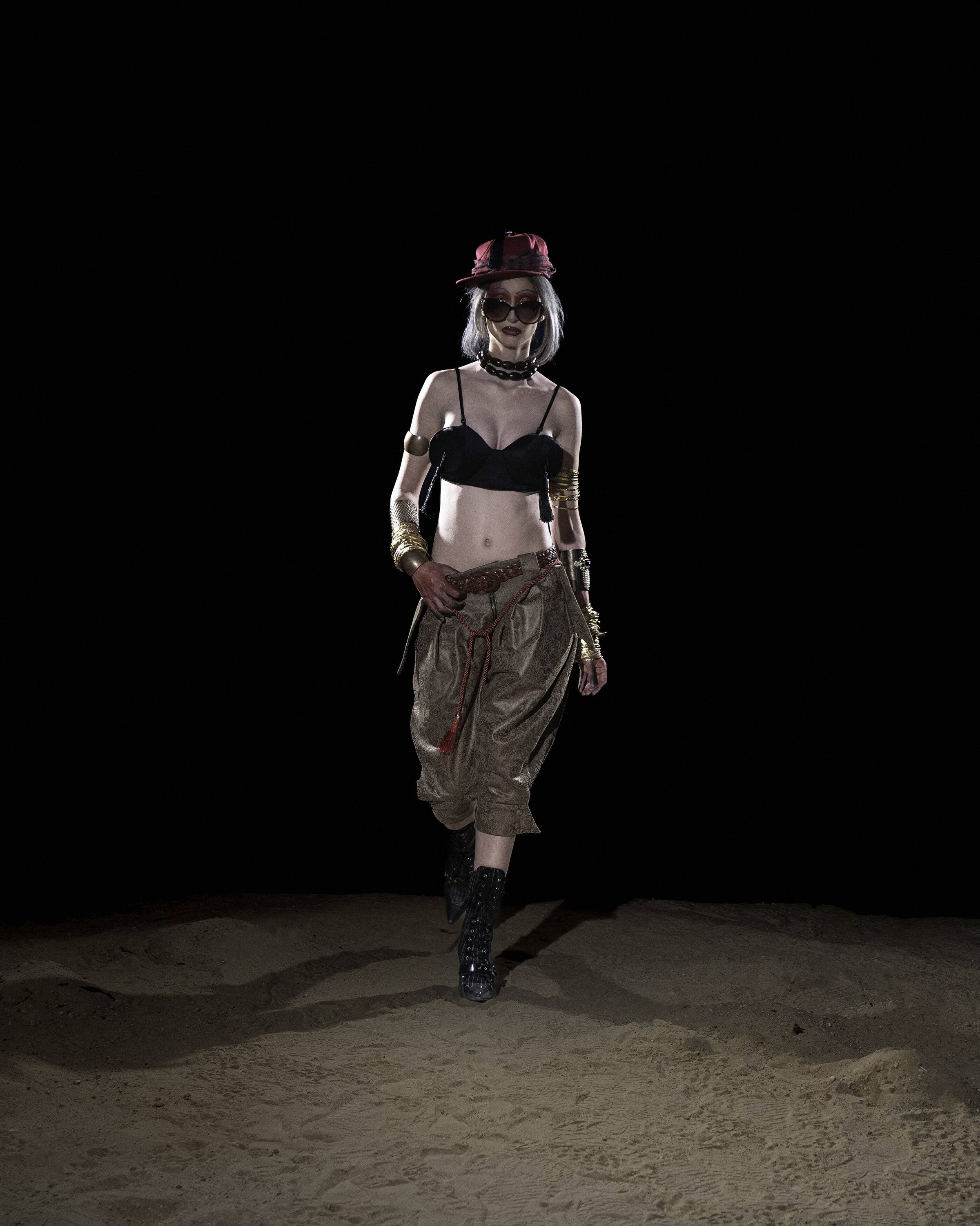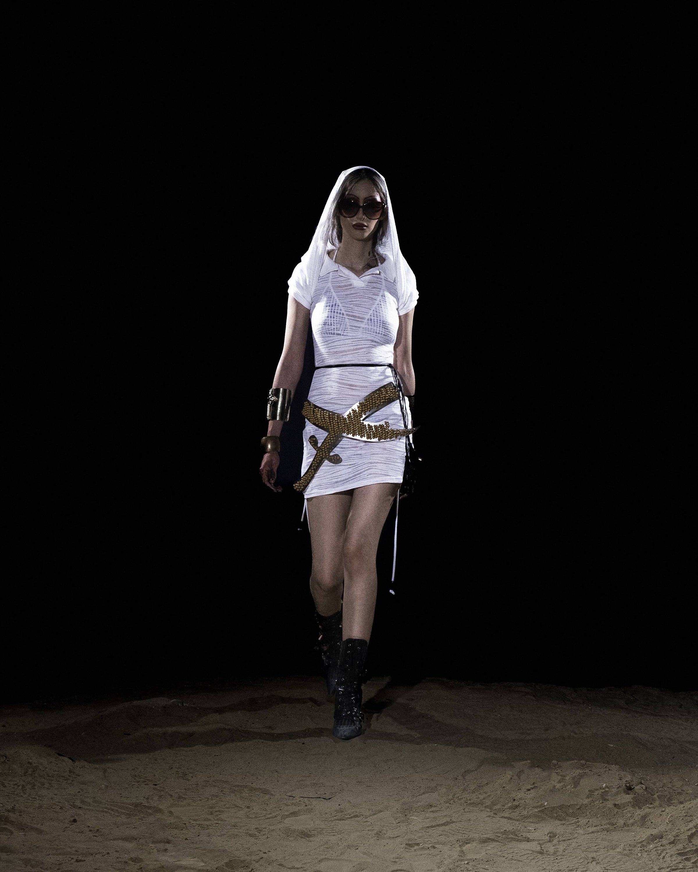 “Bikini Diplomacy” names this paradox: allure framed as harmless yet used to soften the edges of authority. By clothing dominance in glamour, regimes promise vitality while concealing decay. SS26 turns these tactics inside out, using nostalgia as proof of their exhaustion. What once persuaded now reads as costume, a flimsy cover for the machinery behind it.
